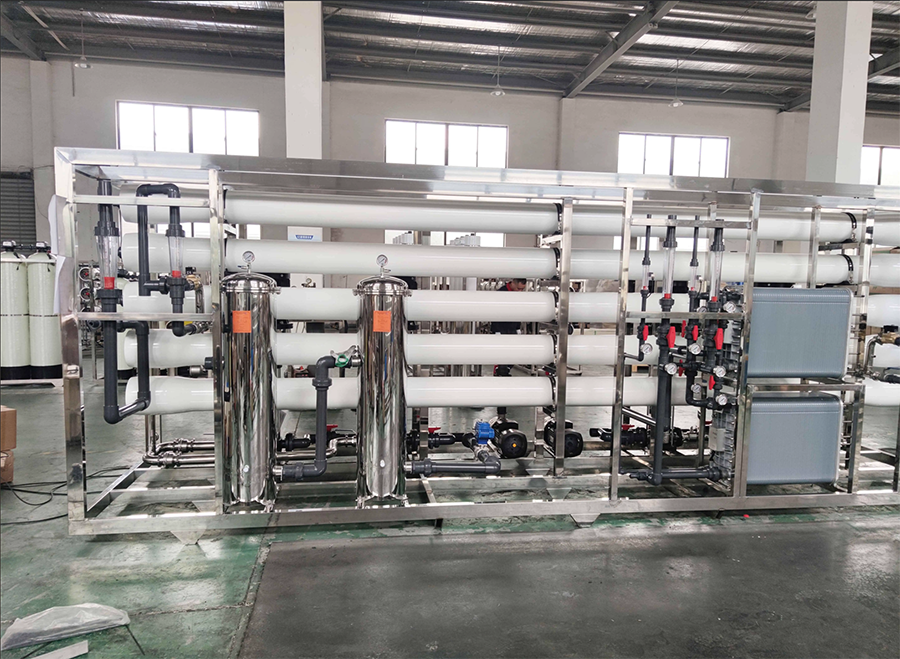 (4)工作压力是否达到反渗透膜额定工作压力。根据反渗透膜的型号确定额定工作压力,适当提高进水压力,可以增加产水量。